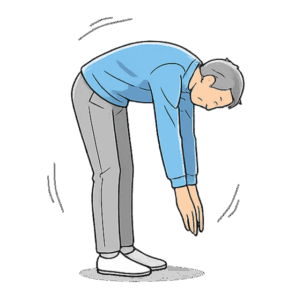 勢いによる代償動作の具体例として、立ったまま勢いよく体を前屈させ、床に指をつけようとする場合を考えてみます。